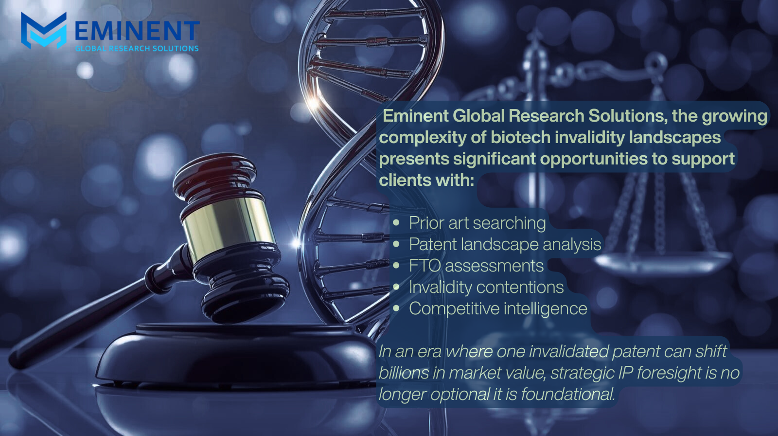 For IP consultancies and research firms like Eminent Global Research Solutions, the growing complexity of biotech invalidity landscapes presents significant opportunities to support clients with: